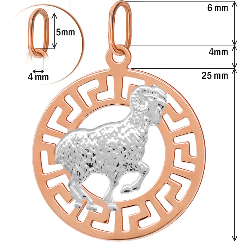 Baran znak zodiaku L przywieszka pamiątka Czerwone i białe złoto pr.585