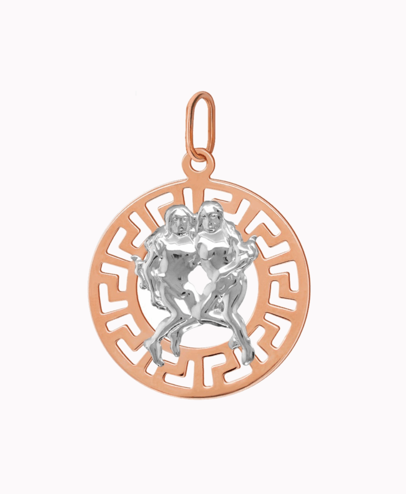 Bliźnięta znak zodiaku L przywieszka pamiątka Czerwone i białe złoto pr.585