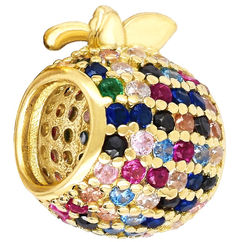 Przedstawiamy uroczy Charms w kształcie jabłka, który przeznaczony jest do modułowych bransolet. To niezwykła ozdoba, pełna symboliki i elegancji. Misterne połączenie złota żółtego z wielobarwnymi Cyrkoniami o średnicy 1,0mm w formie jabłuszka. Motyw jabłka symbolizuje świeżość, oczyszczenie i nowy początek. Jest to także symbol wiedzy i tajemnicy. Ten charm może służyć jako doskonała pamiątka z okazji ważnych wydarzeń lub być wyjątkowym prezentem dla osób bliskich.