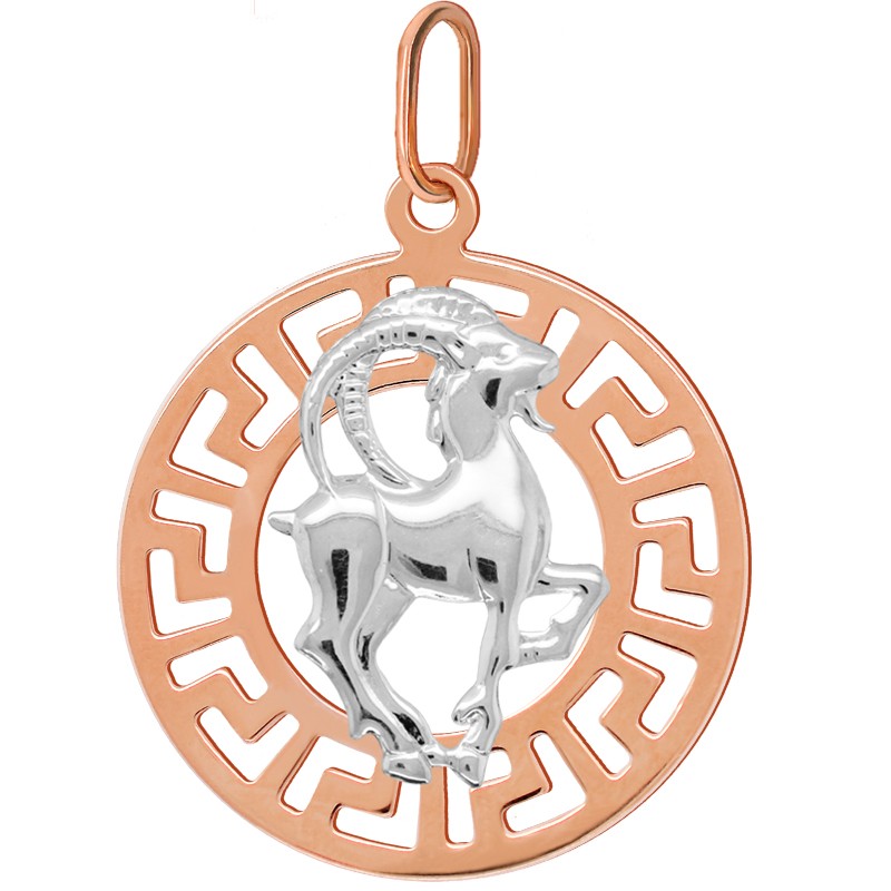 Koziorożec znak zodiaku L przywieszka pamiątka Czerwone i białe złoto pr.585