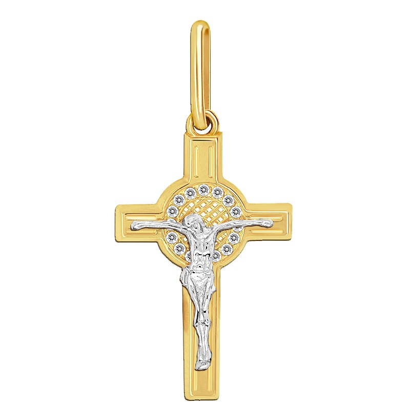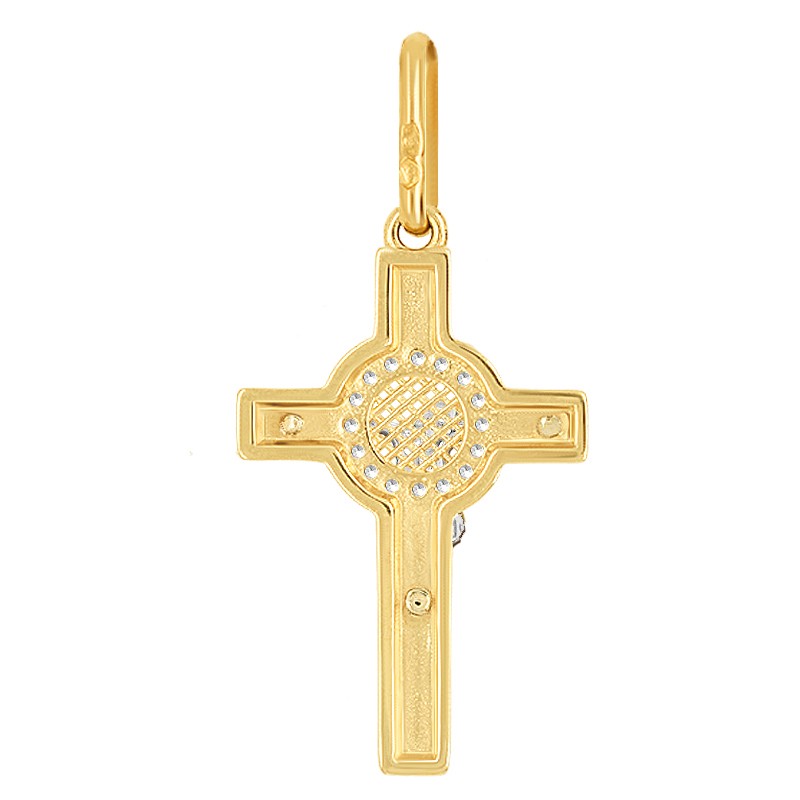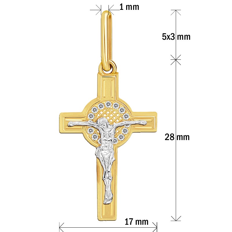 Wisiorek w kształcie krzyżyka ozdobiony cyrkoniami, stanowi przepiękną ozdobę o symbolice religijnej. Ma nieść za sobą liczne łaski i błogosławieństwa, w tym oddalać duchowe i fizyczne niebezpieczeństwa. Zawieszka w kształcie krzyżyka jest starannie wypolerowana przez co pięknie lśni i odbija światło. Pasuje do większości łańcuszków z naszej oferty. Złoty krzyżyk z cyrkoniami stanowi doskonały prezent na każdą okazję, pamiątkę Chrztu św., Pierwszej Komunii Św. Bierzmowania, jubileuszu czy też rocznicy ślubu.