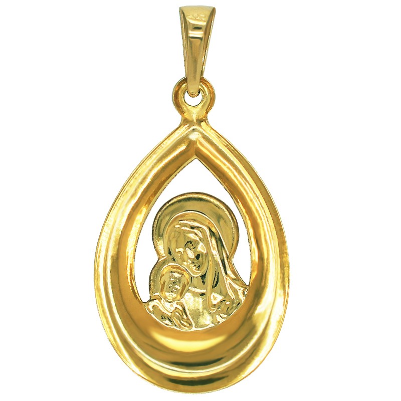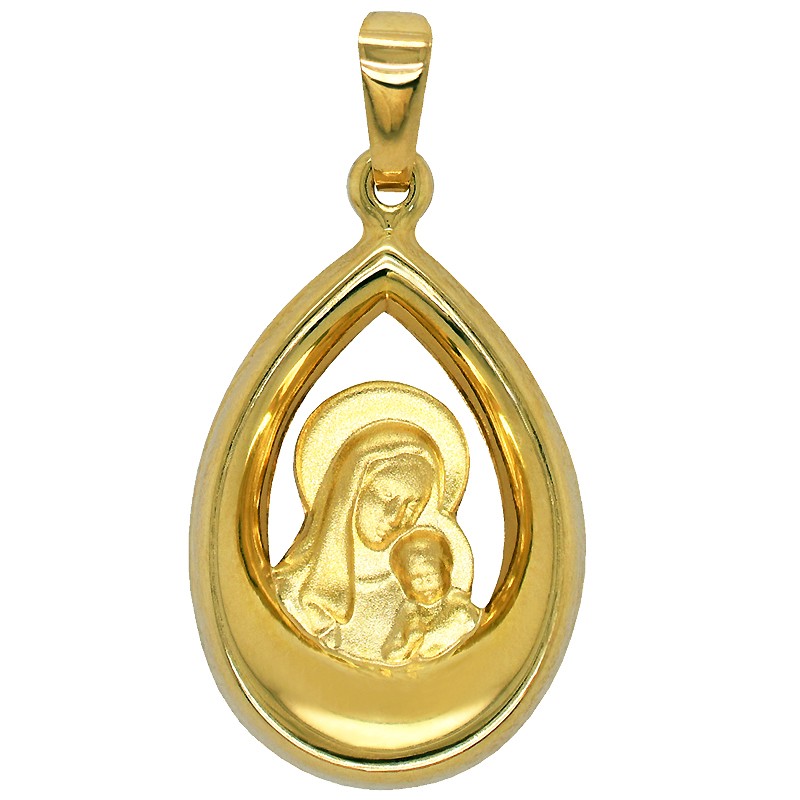 Z wizerunkiem Matki Boskiej z Dzieciątkiem Jezus na awersie. Złoty Medalik o owalnym kształcie typu łezka to nie tylko biżuteria, ale również mistyczny symbol wiary. Jego wizerunek ma duchowe znaczenie dla wielu osób, stanowiąc wyjątkowy prezent dla tych, którzy pragną wyrazić swoją głęboką wiarę i duchową więź. Złoty medalik stanowi doskonały prezent na każdą okazję, pamiątkę Chrztu św., Pierwszej Komunii Św. Bierzmowania, jubileuszu czy też rocznicy ślubu.