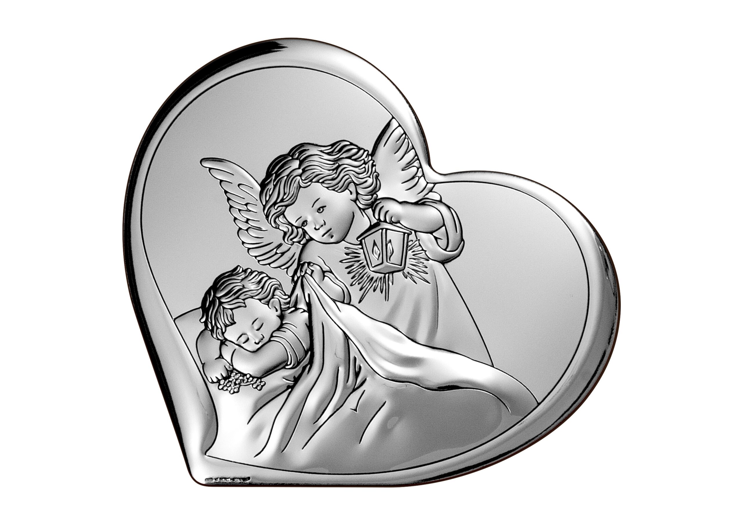 Prezentujemy wyjątkowy obrazek srebrny, idealny jako symboliczny prezent na Chrzest Święty, wyrażający głęboką duchowość. Obraz przedstawia anioła stróża, który czuwa nad snem dziecka. Połączenie matowej powierzchni z połyskującymi postaciami daje efekt niezwykle eleganckiego obrazu, który z powodzeniem stanie się pamiątką przypominającą o przyjęciu sakramentu Chrztu Świętego.