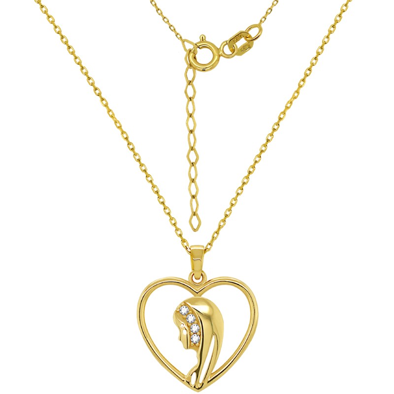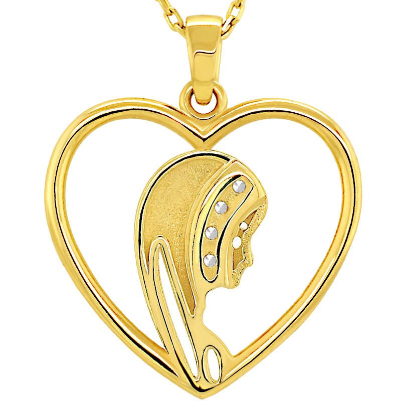 Prezentujemy wyjątkowy złoty łańcuszek z medalem Matki Bożej, stanowiący zarówno piękną pamiątkę chrztu i komunii, jak również silny symbol wiary. Pamiątka Chrztu Św. lub Komunii Św. złoty łańcuszek i Matka Boża medalik w kształcie serduszka pięknie ozdobiony cyrkoniami może stanowić piękną ozdobę religijną, doskonały prezent na każdą okazję na przykład na pamiątkę Chrztu św., Pierwszej Komunii Św. Bierzmowania, jubileuszu czy też rocznicy ślubu.