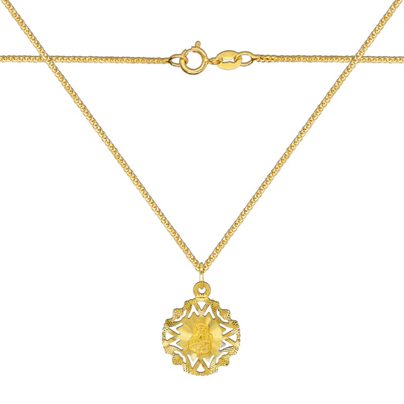 Prezentujemy wyjątkowy złoty łańcuszek z medalikiem z wizerunkiem Matki Boskiej Częstochowskiej z Dzieciątkiem Jezus na awersie, stanowiący zarówno piękną pamiątkę chrztu i komunii, jak również silny symbol wiary. Pamiątka Chrztu Świętego lub Komunii Świętej. To doskonały prezent na każdą okazję na przykład: pamiątkę Chrztu św., Pierwszej Komunii Św. Bierzmowania, jubileuszu, czy też rocznicy ślubu.