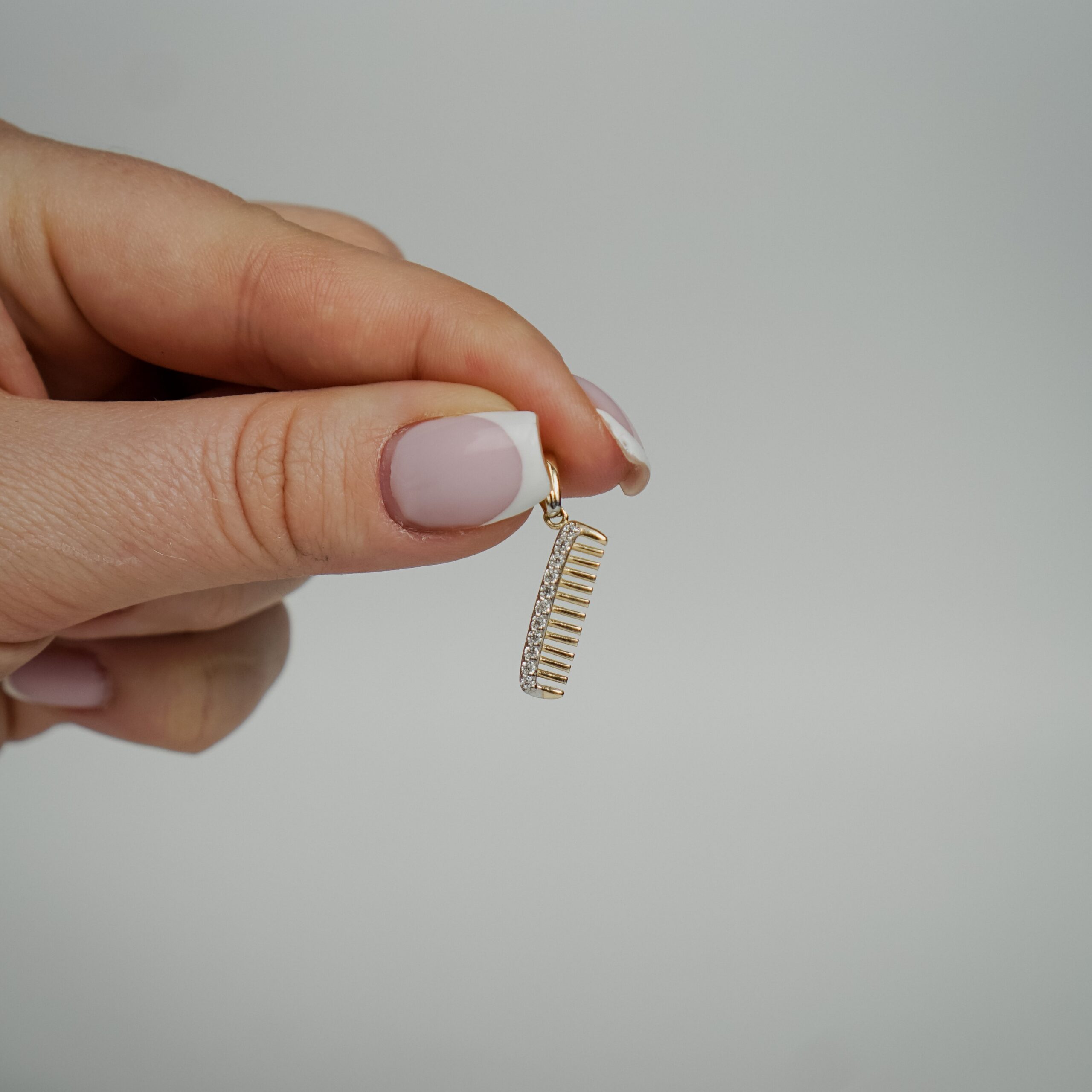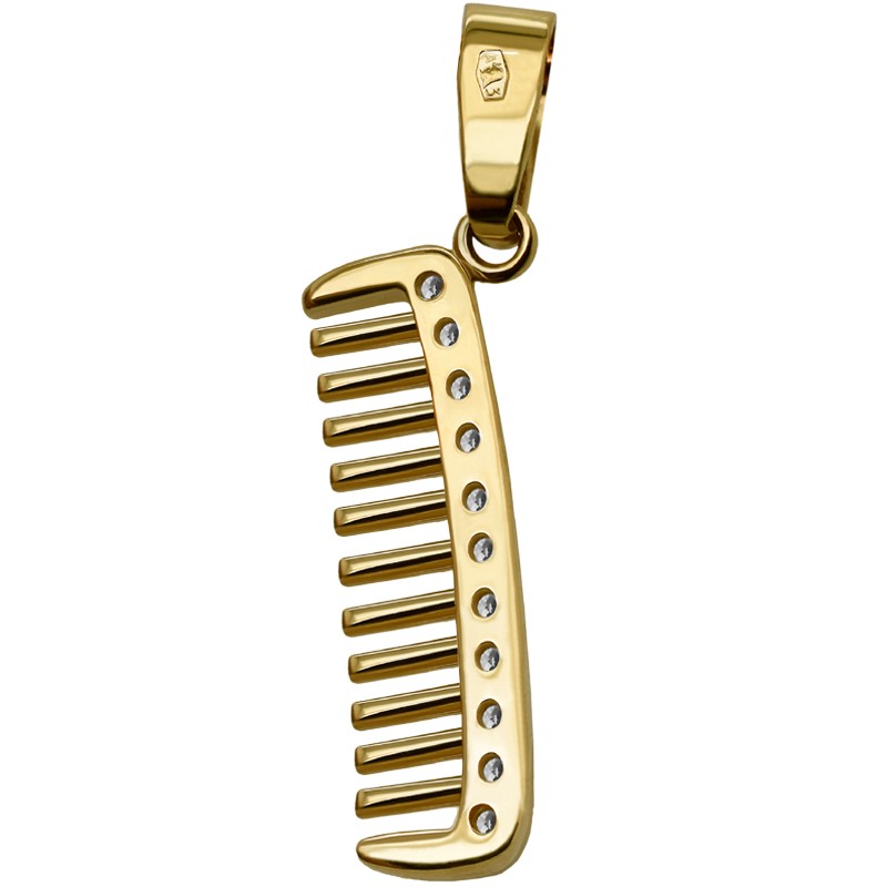 Przywieszka przedstawia grzebień ozdobiony cyrkoniami. Wykonana z wysokiej jakości złota próby 585, to biżuteria idealna dla osób związanych ze światem kreatywności lub fryzjerstwa. Przywieszka w kształcie nożyczek z cyrkoniami emanuje elegancją i stylem. Cyrkonia dodaje subtelny połysk i wyjątkowy akcent. Ta przywieszka symbolizuje kreatywność i wyjątkowość. Dla osób związanych ze światem fryzjerstwa, mody lub sztuki jest to idealny dodatek.