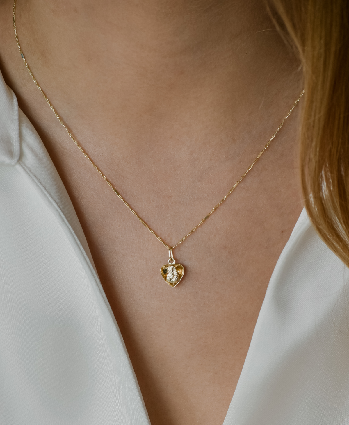 Złoty medalik 3D – serce z wizerunkiem Matki Boskiej Częstochowskiej z Dzieciątkiem Jezus na awersie, rewers stanowi wypolerowany na gładko kształt serduszka. Złoty Medalik to nie tylko biżuteria, ale również mistyczny symbol wiary. Jego wzruszający wizerunek ma duchowe znaczenie dla wielu osób, stanowiąc wyjątkowy prezent dla tych, którzy pragną wyrazić swoją głęboką wiarę i duchową więź. Złoty medalik stanowi doskonały prezent na każdą okazję, pamiątkę Chrztu św., Pierwszej Komunii Św. Bierzmowania, jubileuszu czy też rocznicy ślubu.