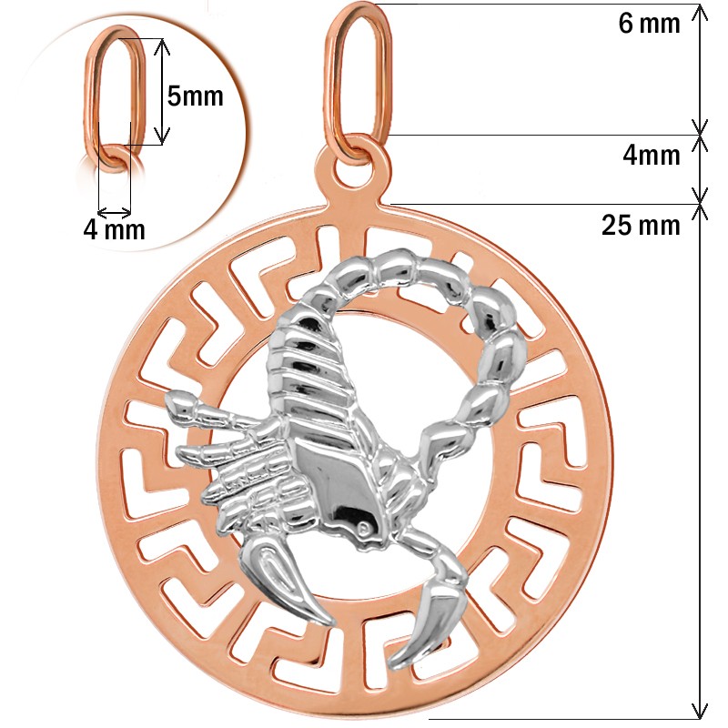 Skorpion znak zodiaku L przywieszka pamiątka Czerwone i białe złoto pr.585