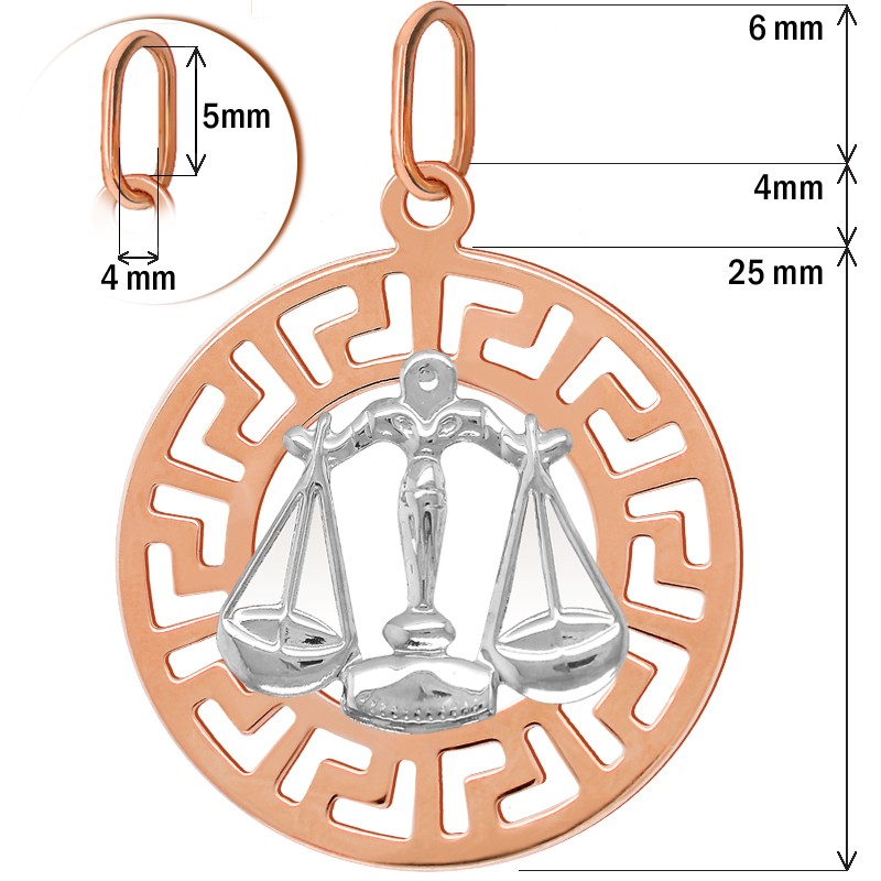Waga znak zodiaku L przywieszka pamiątka Czerwone i białe złoto pr.585