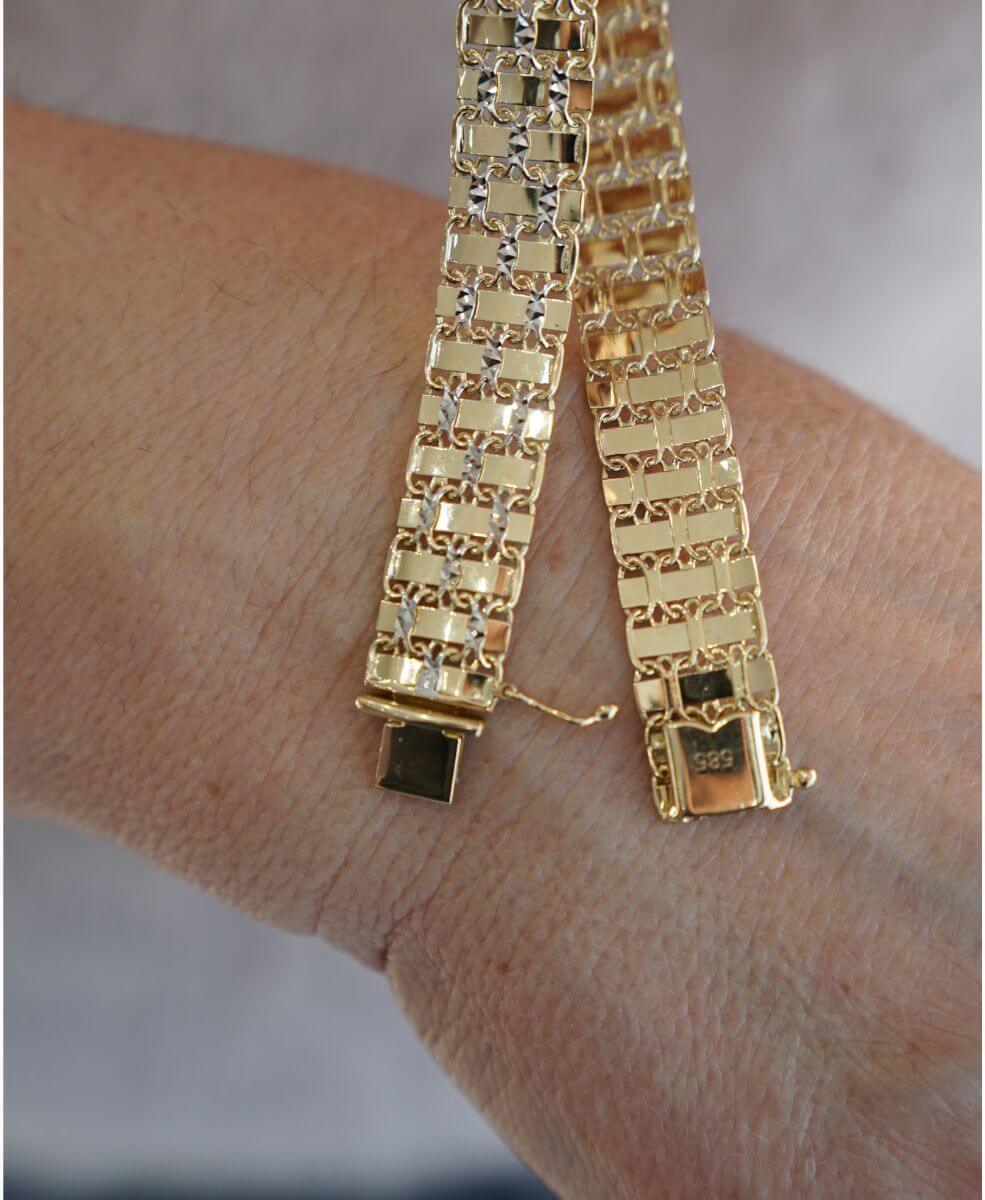 Złota bransoletka Szeherezada z białym złotem pr. 585