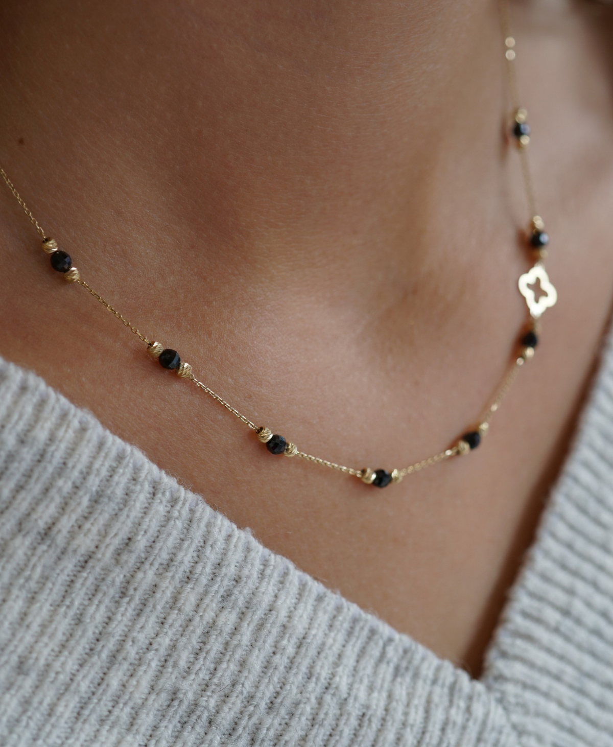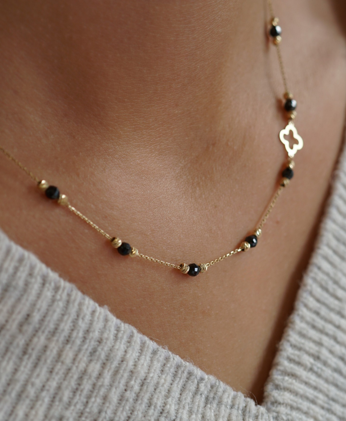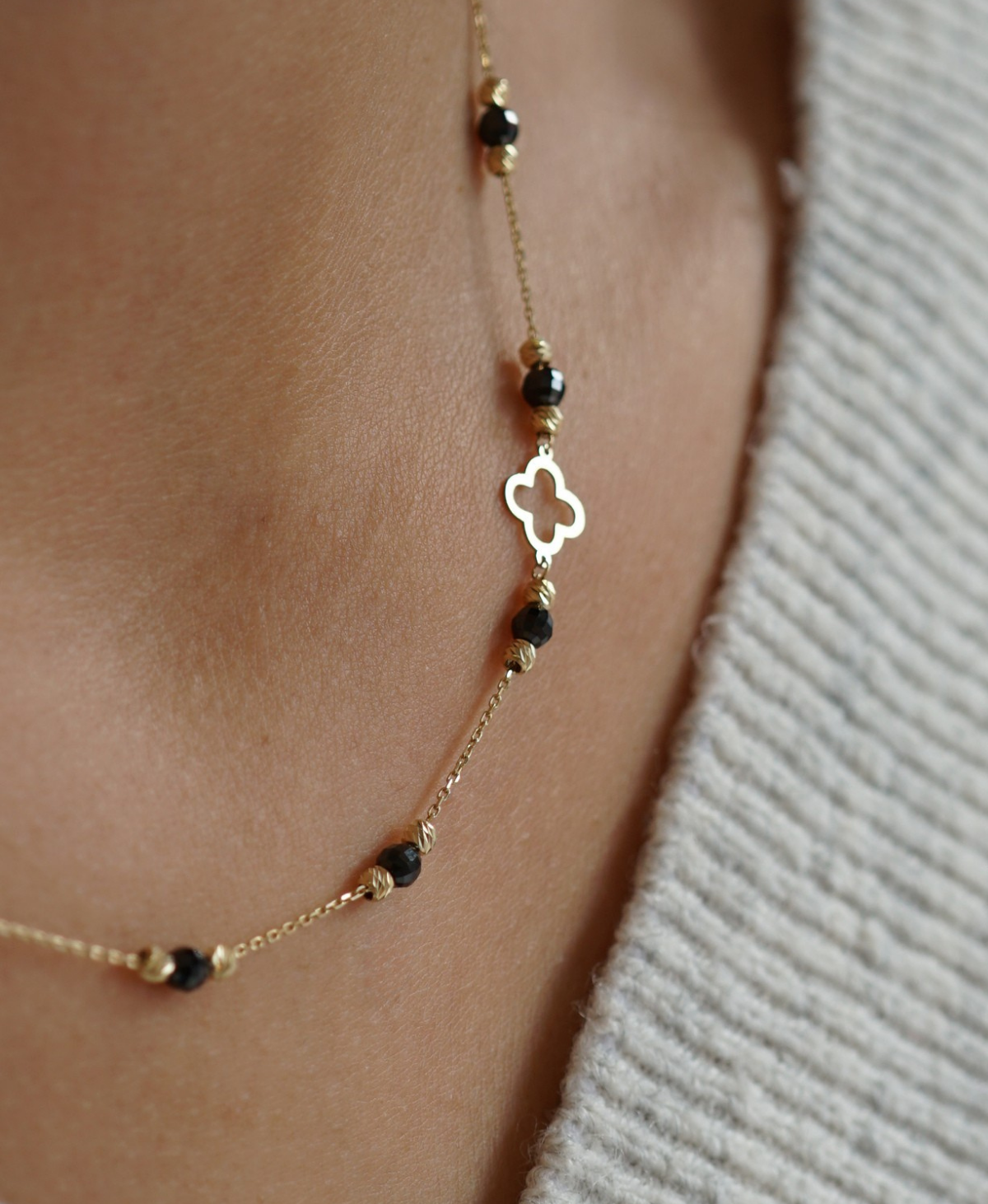 Złota celebrytka z onyksami i koniczynką