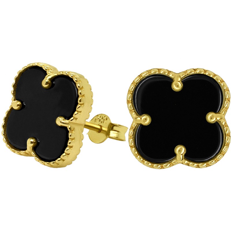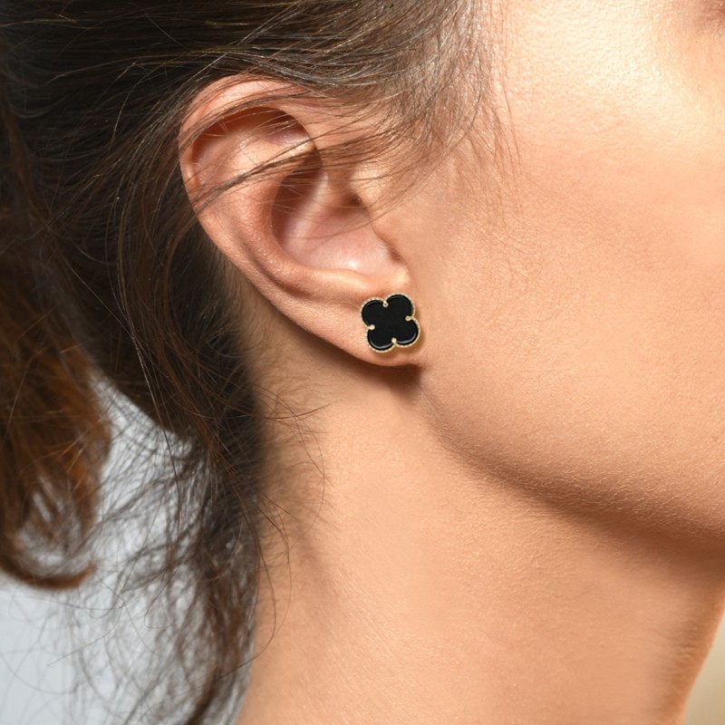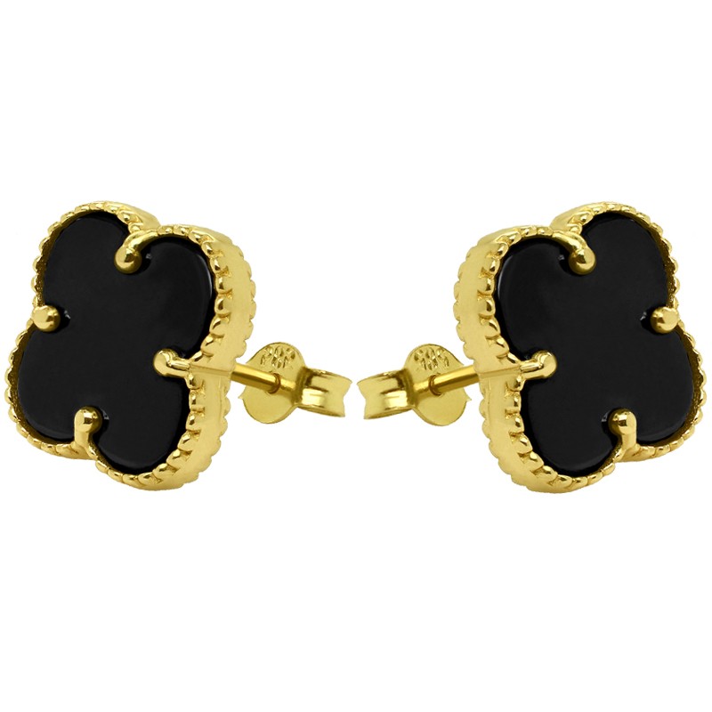 Złote kolczyki czarna koniczynka sztyft L 3,51g 585