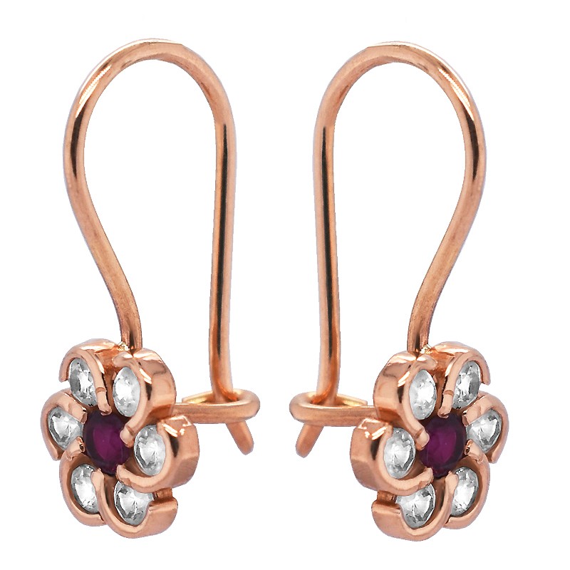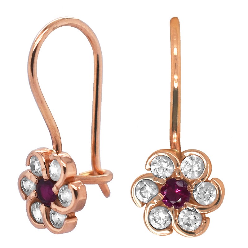 Złote kolczyki dla dziewczynki Kwiatuszki na biglu rose gold pr. 585 1,28g