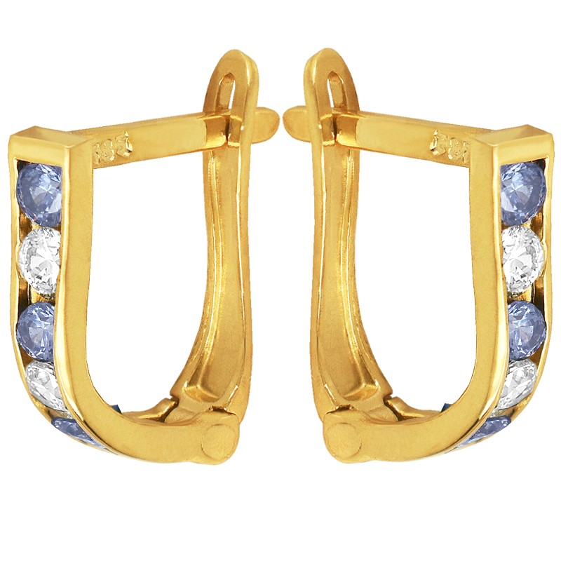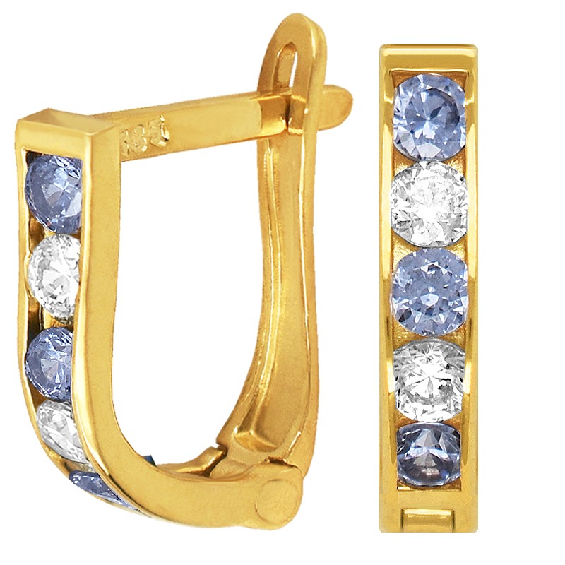 Złote kolczyki dróżka Light Blue z cyrkoniami pr. 585
