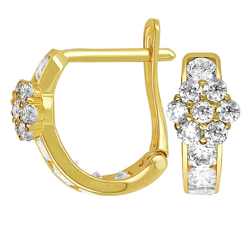 Złote kolczyki Dróżka z kwiatuszkiem z białymi cyrkoniami pr.585 to wyjątkowa biżuteria, która dodaje Twojemu wyglądowi delikatności i elegancji. Subtelny kwiatuszek zdobiony białymi cyrkoniami nadaje kolczykom wyjątkowego charakteru, tworząc harmonijną całość.