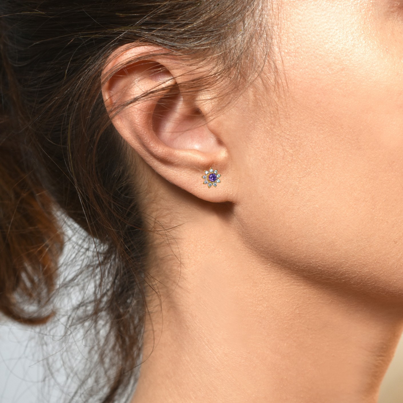 Złote kolczyki Kwiatuszki Ametyst z cyrkoniami łączą w sobie piękno przyrody z subtelnością elegancji. Dodaj swemu wyglądowi wyjątkowego blasku i wyrazistości. Kolczyki prezentują delikatne kwiatuszki ozdobione ametystami i cyrkoniami. Każdy detal to wyraz starannego wykonania i precyzji.