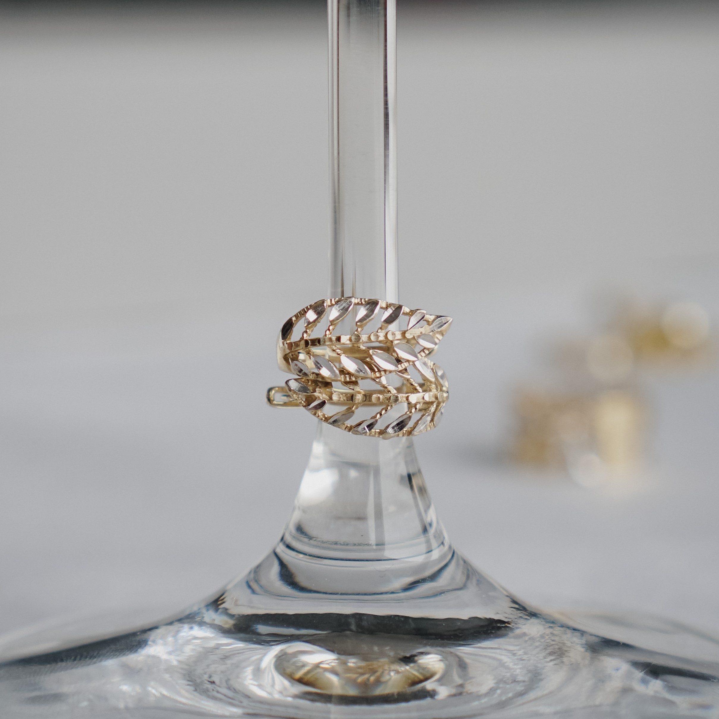 Nietuzinkowe złote kolczyki , bogato zdobione eleganckim wzorem. Nieoczywisty i nieregularny kształt imitujący listek roślinny dodaje im uroku.