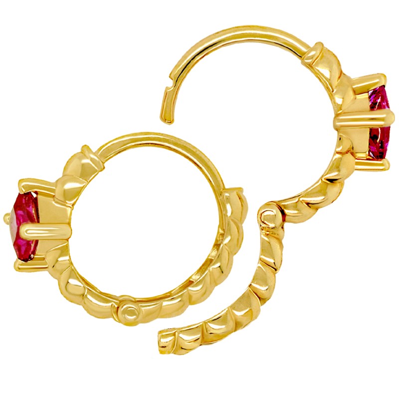 Złote kolczyki plecione dla dziewczynki z Cyrkonią Rubinową typu koła pr.585
