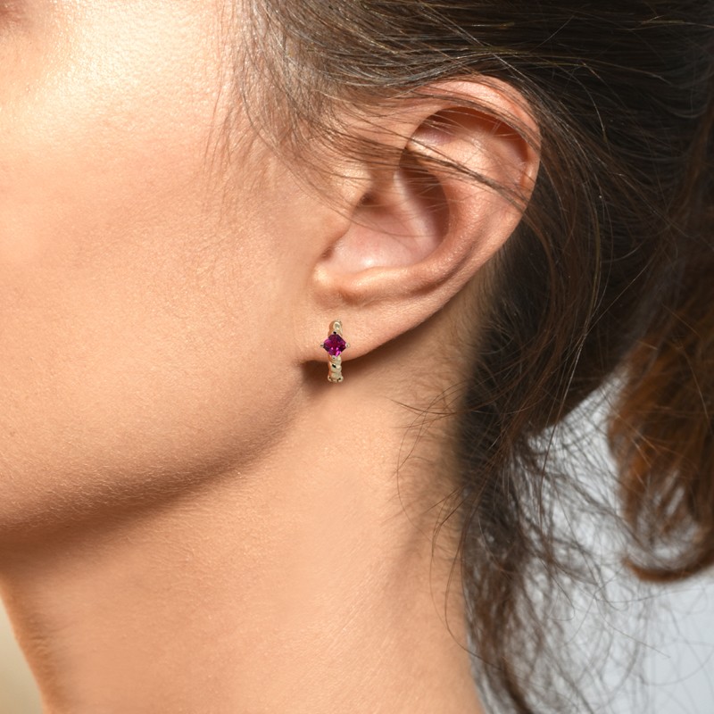Złote kolczyki z cyrkoniami typu koła z cyrkonia Rubinową posiadają zapięcia na bigiel wewnętrzny. Doskonały wzór dla bardzo młodej dziewczynki na pierwsze lata przygody z modą. Fantastycznie sprawdzą się podczas noszenia ich do przedszkola, szkoły na basen czy zajęcia sportowe. Innowacyjny typ zapięcia zabezpiecza przed mimowolny zaczepieniem lub zahaczeniem o szalik czy inną dzianinę jak również nie będzie sytuacji że zapięcia kłują dziecko podczas snu.