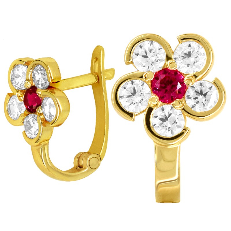 Złote kolczyki Rose Kwiatuszki z cyrkonią pr. 585 1,56g