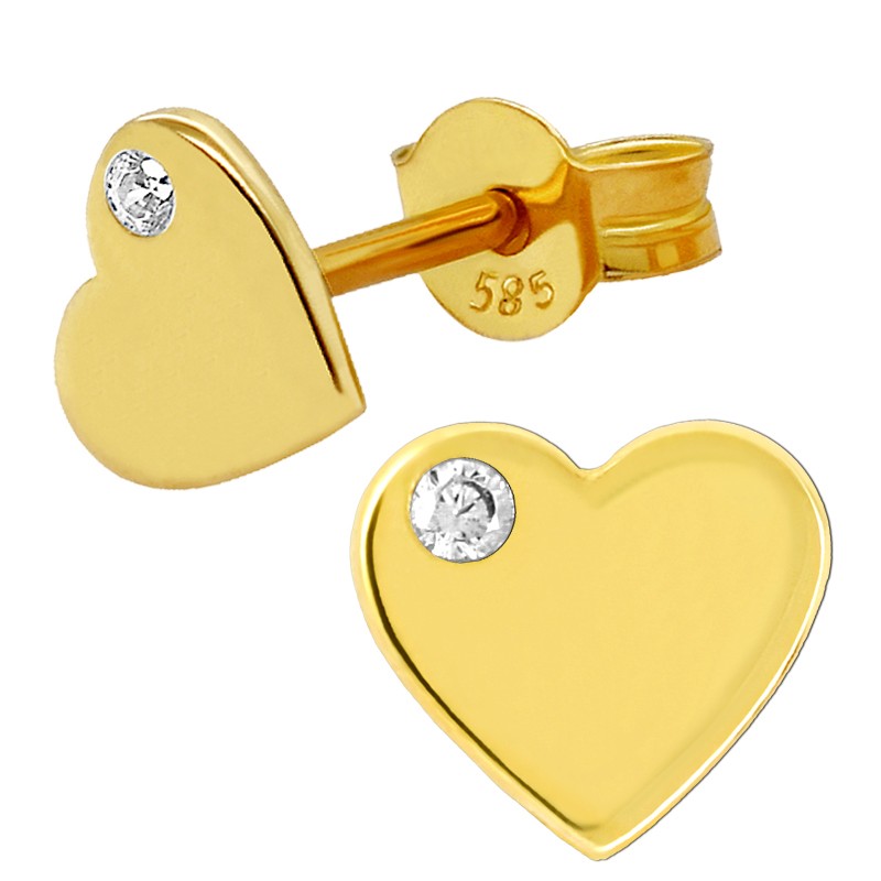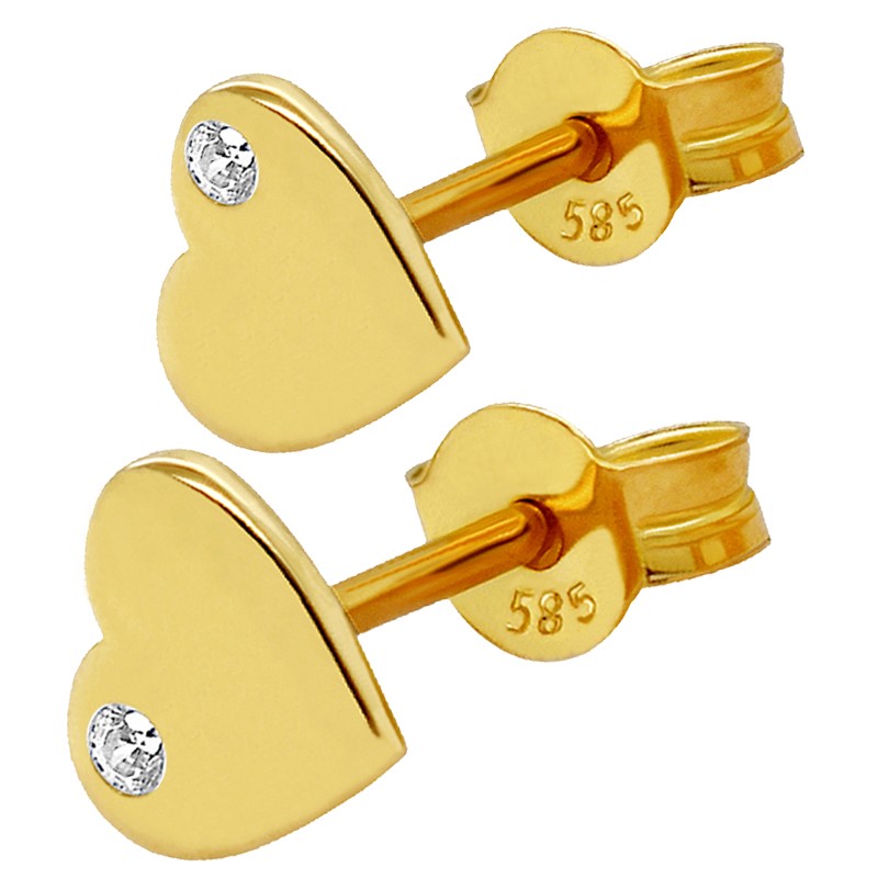 Złote kolczyki Serduszka z Cyrkonią sztyft pamiątka pr.585 0,8g