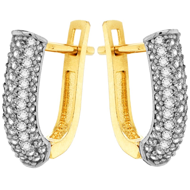 Złote kolczyki wielokamieniowe Białe-Rodowane cyrkonie 585