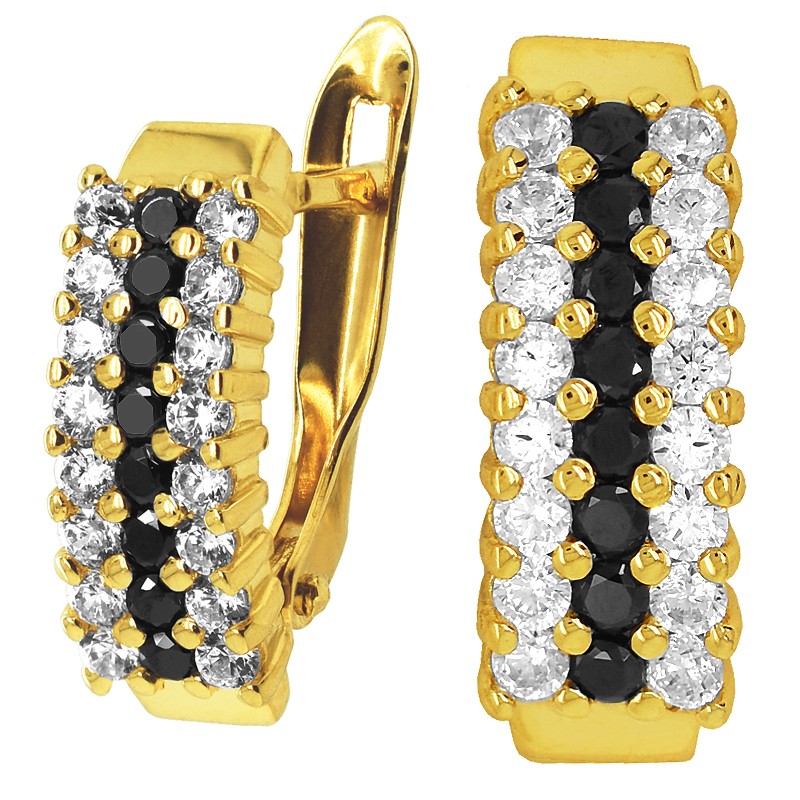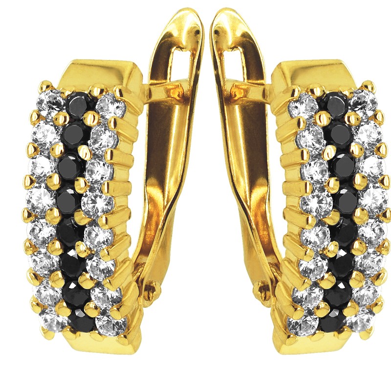Złote kolczyki wielokamieniowe z białymi i czarnymi cyrkoniami S pr.585 2,72