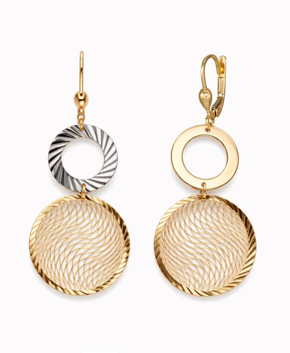 Złote kolczyki wiszące podwójne kółka pr. 585