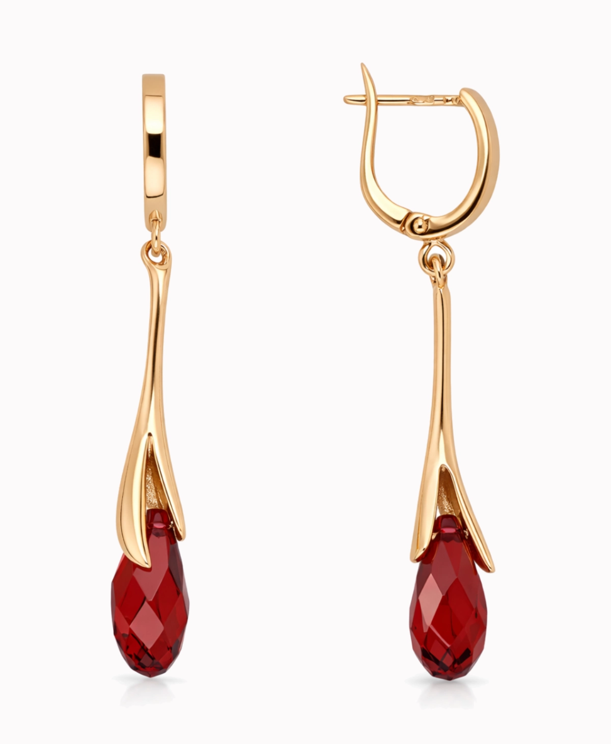 Wykonane z najwyższej jakości złota próby 585 (14K), złote kolczyki wiszące z czerwoną cyrkonią gwarantują trwałość przez wiele lat noszenia. Złote kolczyki komponują się z codziennymi, a także eleganckimi stylizacjami. Złoto jest niezwykle starannie wypolerowane, przez co naprawdę pięknie lśni i odbija światło. Jest to biżuteria na długie lata.