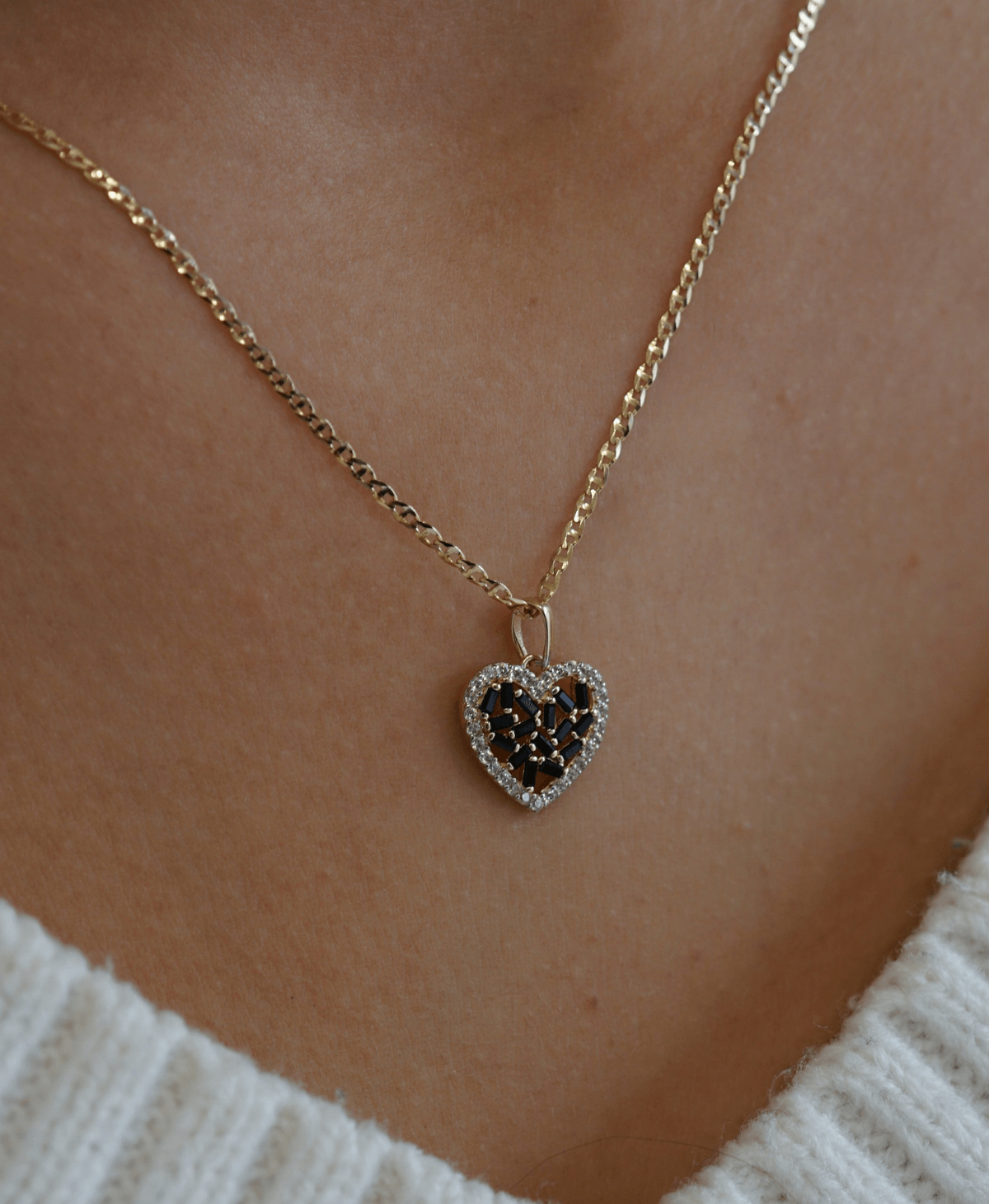 Złote Serce z Biało-Czarnymi Cyrkoniami