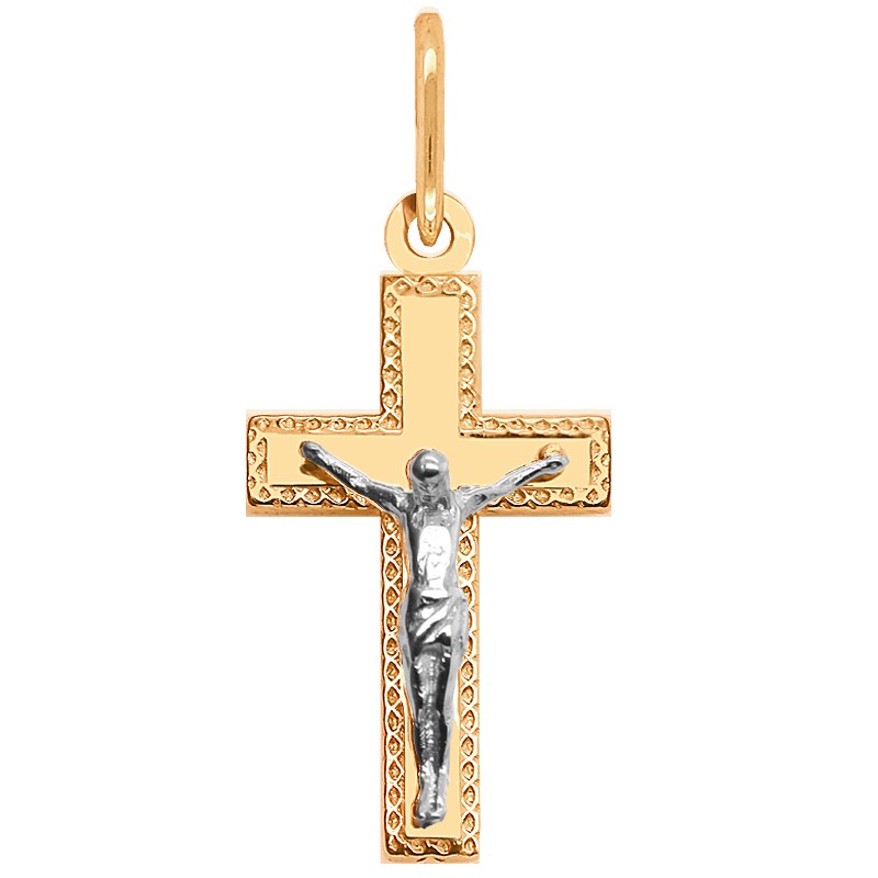 Złoty krzyżyk MPC Prawosławny czerwone złoto z białym złotem– wisiorek w kształcie krzyżyka z figurą Jezusa Chrystusa wykonaną z białego rodowanego złota, stanowi przepiękną ozdobę o symbolice religijnej.