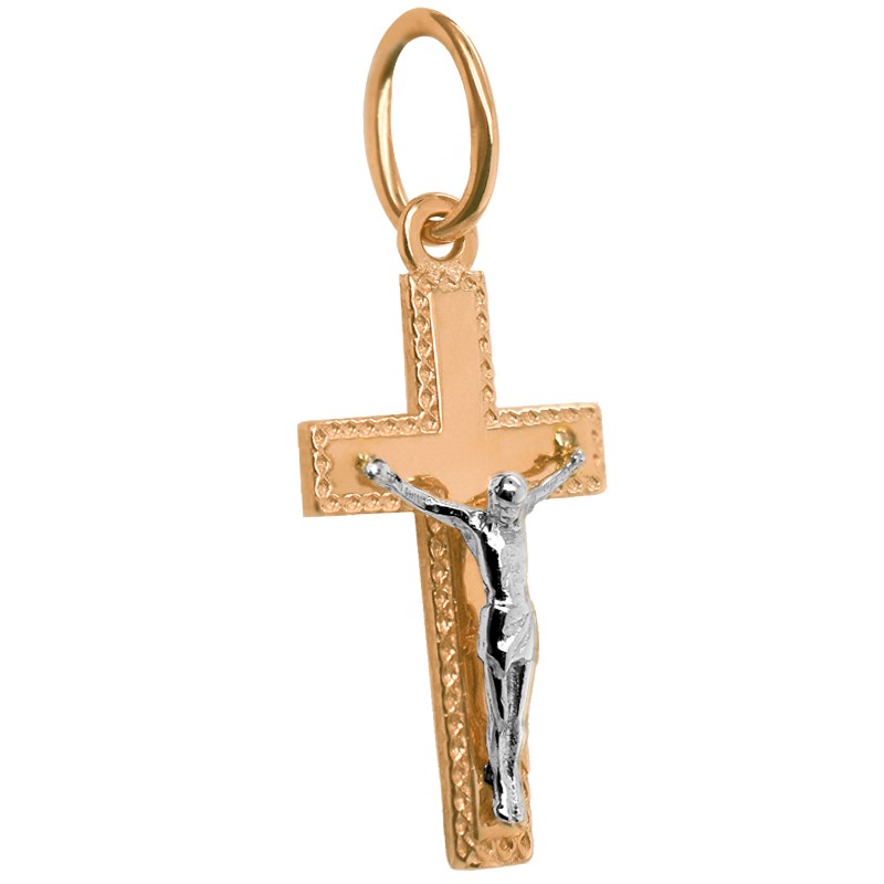 Złoty krzyżyk LPC Prawosławny czerwone złoto z białym złotem– wisiorek w kształcie krzyżyka z figurą Jezusa Chrystusa wykonaną z białego rodowanego złota, stanowi przepiękną ozdobę o symbolice religijnej.