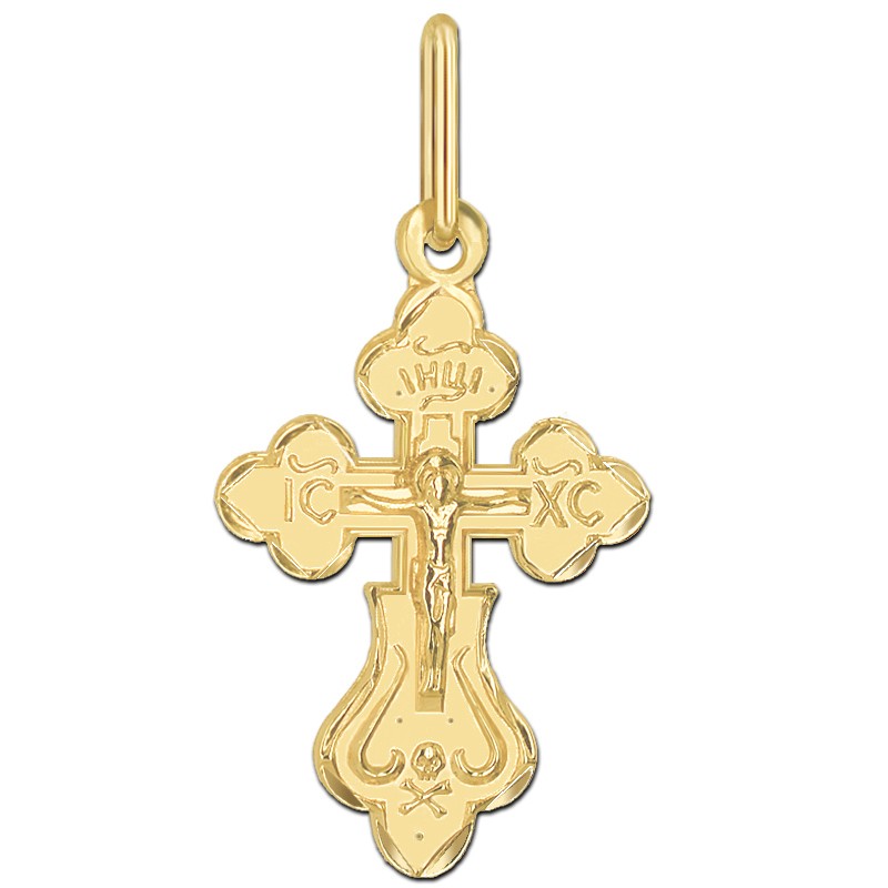 Wisiorek w kształcie krzyżyka z figurą Jezusa Chrystusa, stanowi przepiękną ozdobę o symbolice religijnej. Krzyżyk jest wykonany z najwyższą starannością z żółtego złota wysokiej próby 585 = 14 karatowe złoto. Zawieszka w kształcie krzyżyka jest wzbogacona elementami grawerowanymi jak również starannie wypolerowana przez co pięknie lśni i odbija światło. Pasuje do większości łańcuszków z naszej oferty. Złoty medalik stanowi doskonały prezent na każdą okazję, np. pamiątkę Chrztu Świętego.