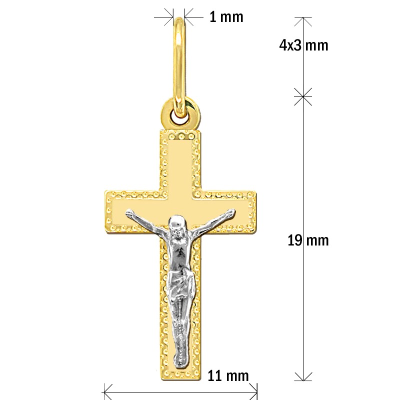 Wisiorek w kształcie krzyżyka z figurą Jezusa Chrystusa, stanowi przepiękną ozdobę o symbolice religijnej. Krzyżyk jest wykonany z najwyższą starannością z żółtego złota wysokiej próby 585 = 14 karatowe złoto. Zawieszka w kształcie krzyżyka jest wzbogacona elementami grawerowanymi jak również starannie wypolerowana przez co pięknie lśni i odbija światło. Pasuje do większości łańcuszków z naszej oferty. Złoty medalik stanowi doskonały prezent na każdą okazję, np. pamiątkę Chrztu Świętego.
