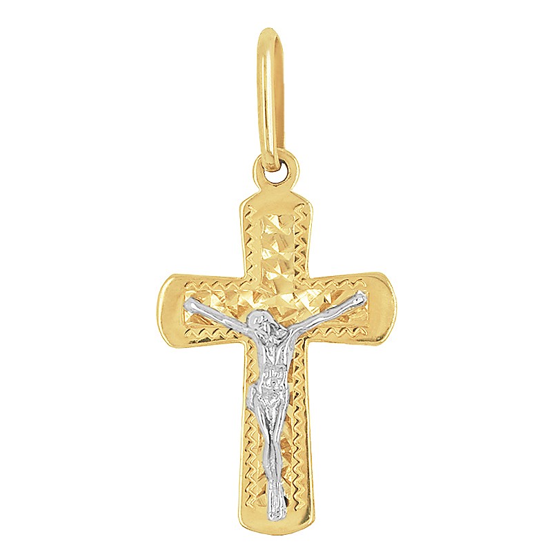 Wisiorek w kształcie krzyżyka z figurą Jezusa Chrystusa wykonaną z białego złota, stanowi przepiękną ozdobę o symbolice religijnej. Krzyżyk jest wykonany z najwyższą starannością z żółtego i białego złota wysokiej próby 585 = 14 karatowe złoto. Zawieszka w kształcie krzyżyka jest wzbogacona elementami grawerowanymi jak również starannie wypolerowana przez co pięknie lśni i odbija światło. Pasuje do większości łańcuszków z naszej oferty. Złoty medalik stanowi doskonały prezent na każdą okazję, np. pamiątkę Chrztu Świętego.