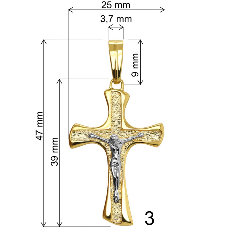 Złoty Krzyżyk Warszawski wykonany z żółtego złota, urozmaicony figurką Jezusa z białego złota. To połączenie tradycji i symboliki wiary. Figurka Jezusa umieszczona na krzyżu to wyraz oddania i głębokiej religijności. To także odniesienie do symboliki chrześcijańskiej. Ten krzyżyk stanowi doskonały prezent z okazji ważnych uroczystości religijnych lub pamiątkę, która będzie przypominać o wierze. Złoty Krzyżyk Warszawski z Figurką Jezusa, wykonany z połączenia żółtego i białego złota próby 585, to połączenie tradycji, elegancji i symboliki religijnej. Jest to biżuteria, która podkreśla wiarę i oddanie, będąc jednocześnie wyrazem artystycznego designu.