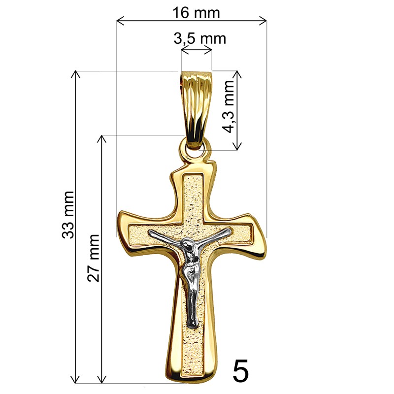 | Wymiary (w cm) | Długość całkowita 33mm, sam krzyżyk 27mm, szerokość 16mm, zawieszka wymiar wewnętrzny 3 x 6mm. |