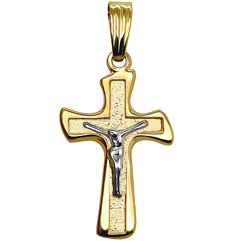 Złoty Krzyżyk Warszawski z Figurką Jezusa – Żółte i Białe Złoto 585