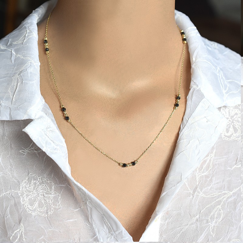Złoty Łańcuszek Celebrytka z czarnymi Onyksami pr. 585