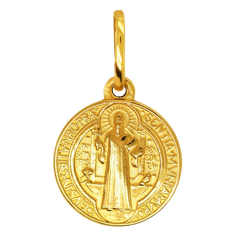 Awers złotego medalika przedstawia postać św. Benedykta. Natomiast rewers przedstawia krzyż wraz z pierwszymi literami z modlitwy z egzorcyzmem, między innymi CSSML co znaczy „Krzyż święty niech mi będzie światłem”. Jest w użyciu co najmniej od XVII wieku. Ma nieść za sobą liczne łaski i błogosławieństwa, w tym oddalać duchowe i fizyczne niebezpieczeństwa.