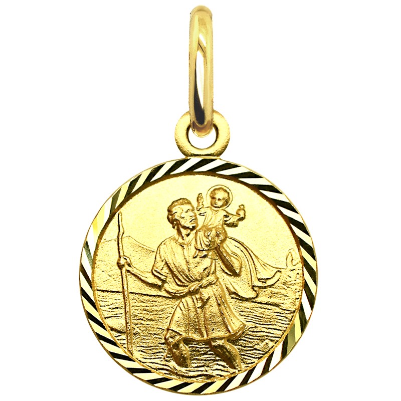 Złoty medalik Św. Krzysztofa – święty Kościoła katolickiego i prawosławnego – patron kierowców, podróżników i pielgrzymów. Przez wieki mówiono „wystarczy spojrzeć na wizerunek św. Krzysztofa, żeby ustrzec się przed wszelkim nieszczęściem”. Wizerunek Świętego Krzysztofa na medaliku symbolizuje opiekę i ochronę w podróży, dlatego jest popularny wśród podróżujących. Medalik przedstawia postać św. Krzysztofa z Dzieciątkiem Jezus na ramieniu podczas przeprawy. Medalik jest wykonany ze złota wysokiej próby 585 w delikatnym żółtym kolorze, a brzeg medalika gustownie wypolerowany przez co pięknie lśni i odbija światło. Pasuje do większości łańcuszków z naszej oferty.