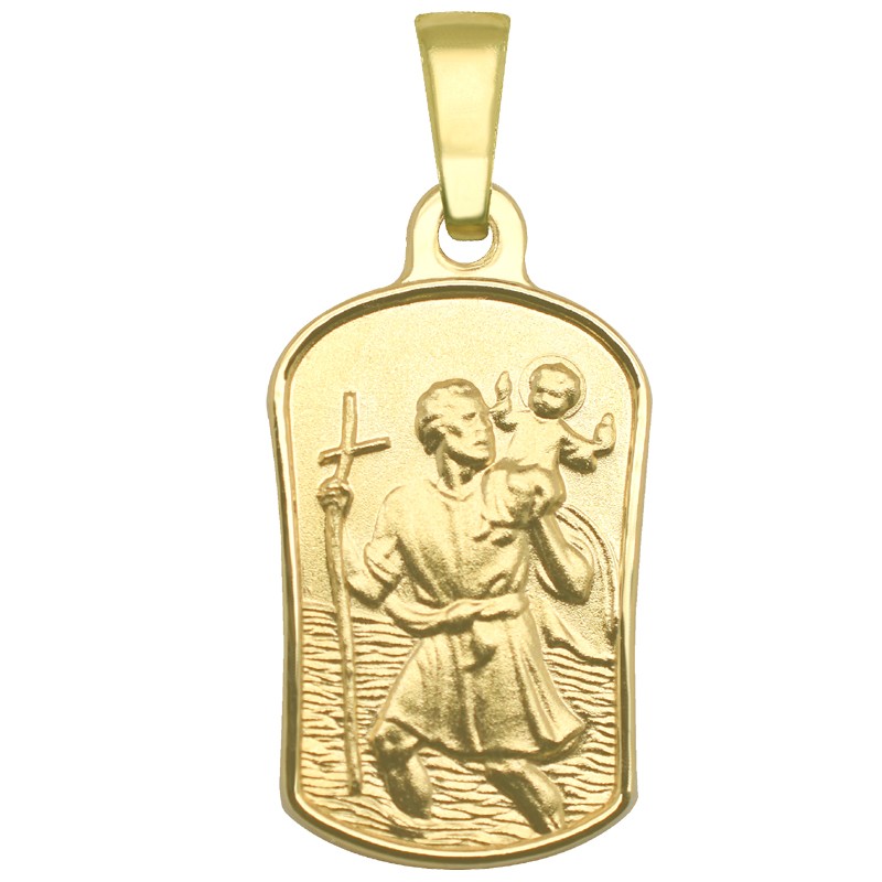 Złoty medalik Św. Krzysztofa – święty Kościoła katolickiego i prawosławnego – patron kierowców, podróżników i pielgrzymów. Przez wieki mówiono „wystarczy spojrzeć na wizerunek św. Krzysztofa, żeby ustrzec się przed wszelkim nieszczęściem”. Wizerunek Świętego Krzysztofa na medaliku symbolizuje opiekę i ochronę w podróży, dlatego jest popularny wśród podróżujących. Medalik przedstawia postać św. Krzysztofa z Dzieciątkiem Jezus na ramieniu podczas przeprawy. Medalik jest wykonany ze złota wysokiej próby 585 w delikatnym żółtym kolorze, a brzeg medalika gustownie wypolerowany przez co pięknie lśni i odbija światło. Pasuje do większości łańcuszków z naszej oferty.