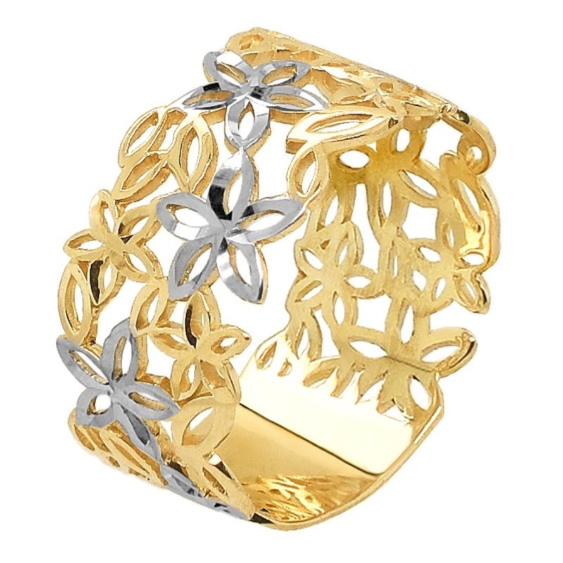 Złoty Pierścionek Szeroki Wzór Kwiatowy
