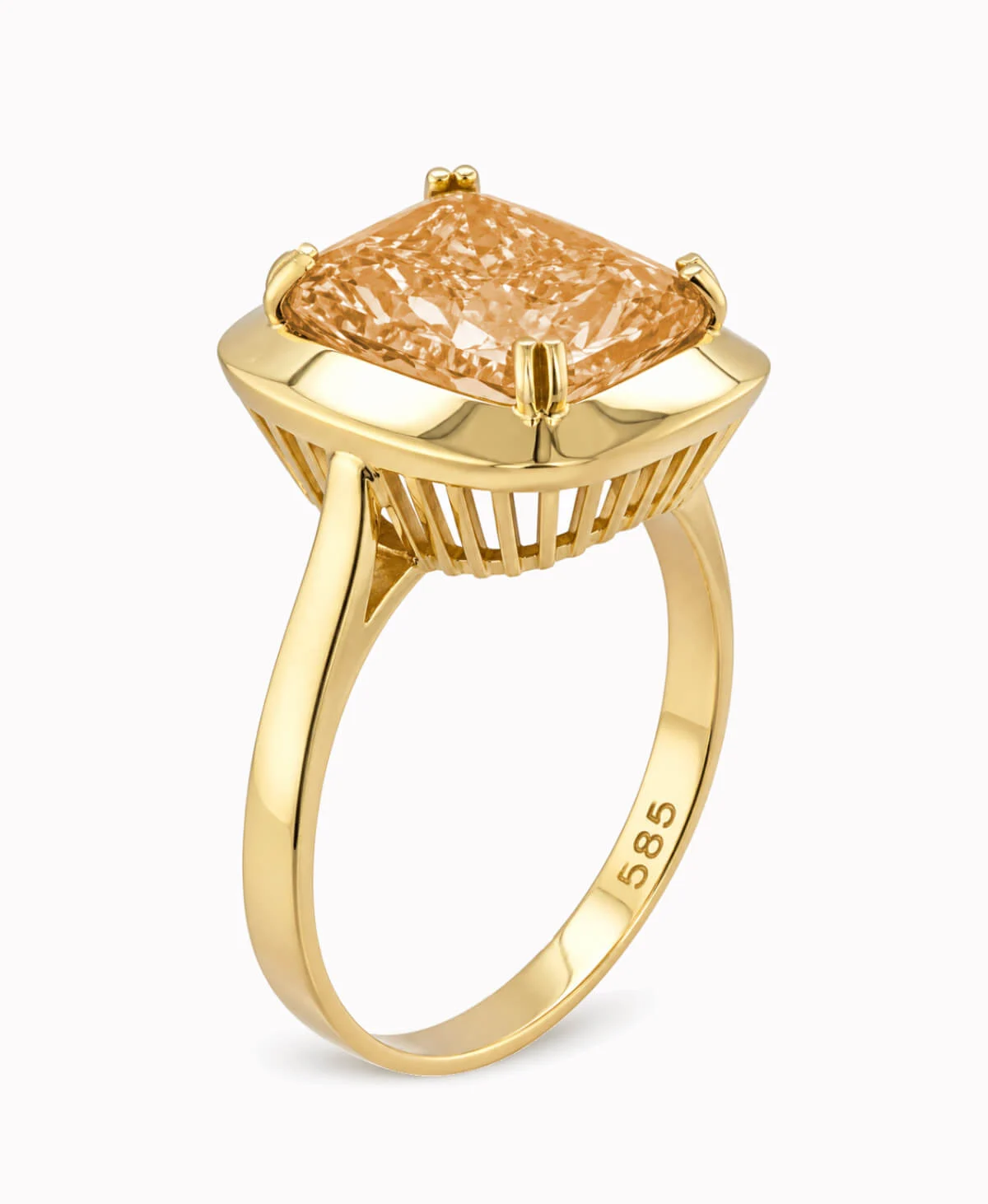 Złoty pierścionek z szampańską cyrkonią pr. 585