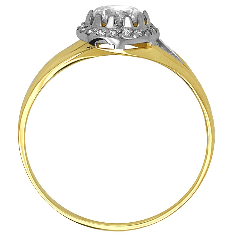 Wyjątkowy złoty pierścionek zaręczynowy z cyrkonią to wyrafinowany wyraz Twojej miłości i zaangażowania. Nasza biżuteria łączy białe rodowane i żółte złoto próby 585, tworząc nie tylko symbol uczuć, lecz także nadając pierścionkowi niesamowity blask. Cyrkonia o diamentowym kroju świeci niczym gwiazda, przyciągając spojrzenia swoim subtelnym migotaniem.