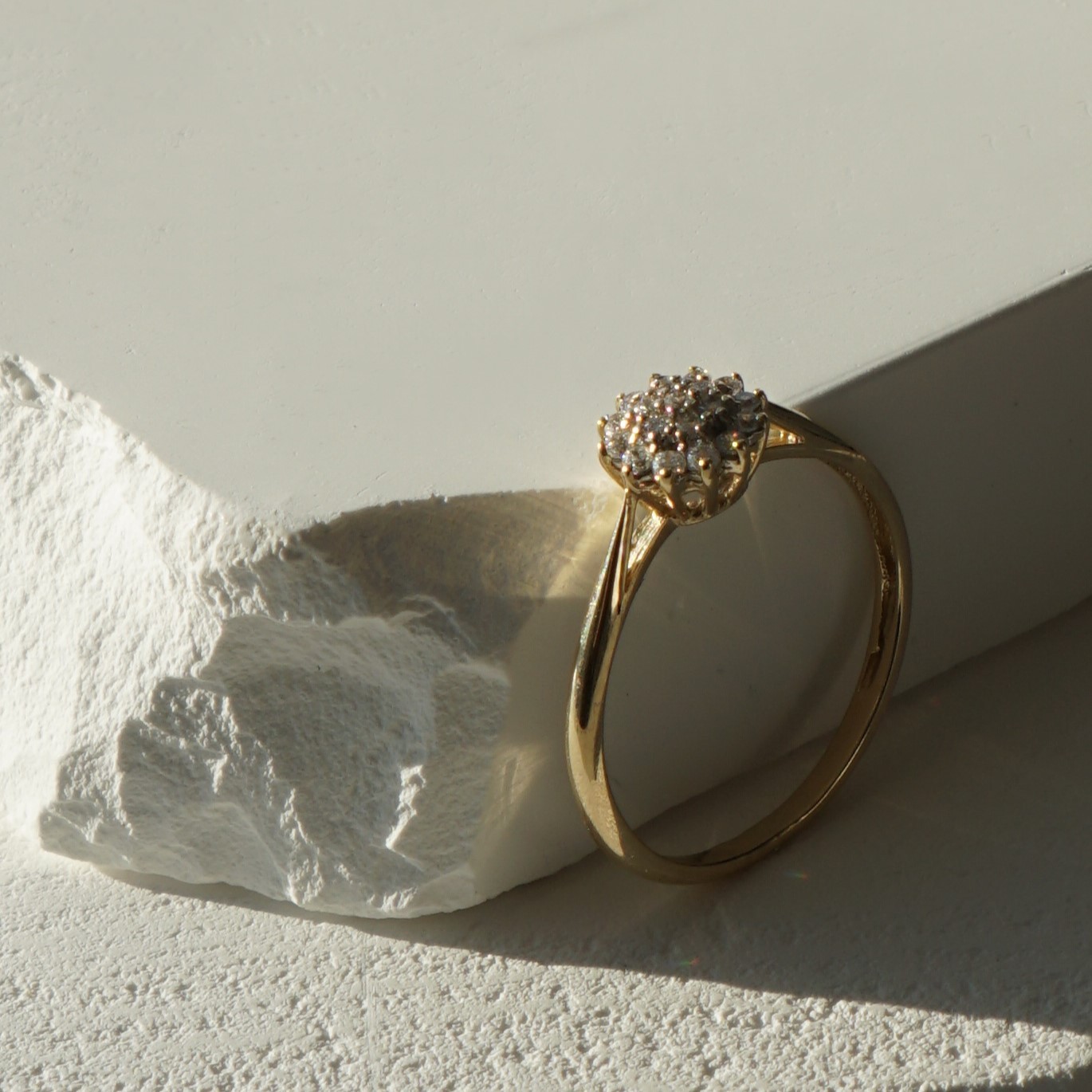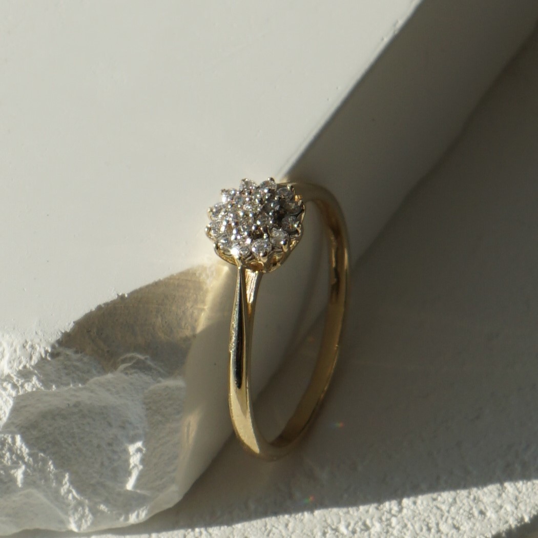 Złoty Pierścionek Zaręczynowy z 19 Cyrkoniami żółte złoto 585